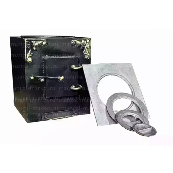 К достоинствам данной модели можно отнести наличие двухкамерной печи, верхняя часть которой выполнена в виде чугунной плитой со съемными кольцами, что позволяет готовить пищу в любой по объему посуде.