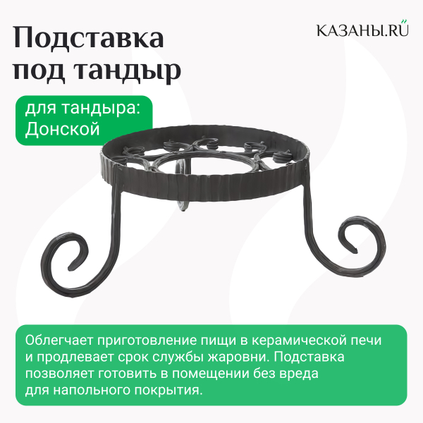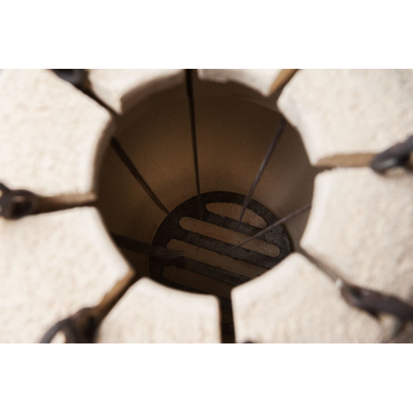 Тандыр имеет стальное основание, которое усиливает стенки печи. Также к основанию крепятся специальные ручки-кольца, предназначенные для транспортировки жаровни. Растопить его можно с помощью дров, брикетов, угля. Когда в жаровне будет создана подходящая температура, можно готовить. В печи готовят блюда из рыбы, мяса, овощей, круп, также тандыр используют для вкуснейшей и ароматной выпечки в восточном стиле.