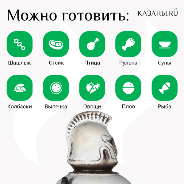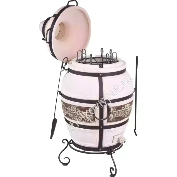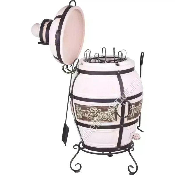 Печь поставляется с набором из 8 шампуров, кованой подставкой под тандыр, чугунным колосником, кочергой и совком. При необходимости можно выбрать модель в расширенной комплектации или подобрать аксессуары, которые расширяют перечень доступных блюд.