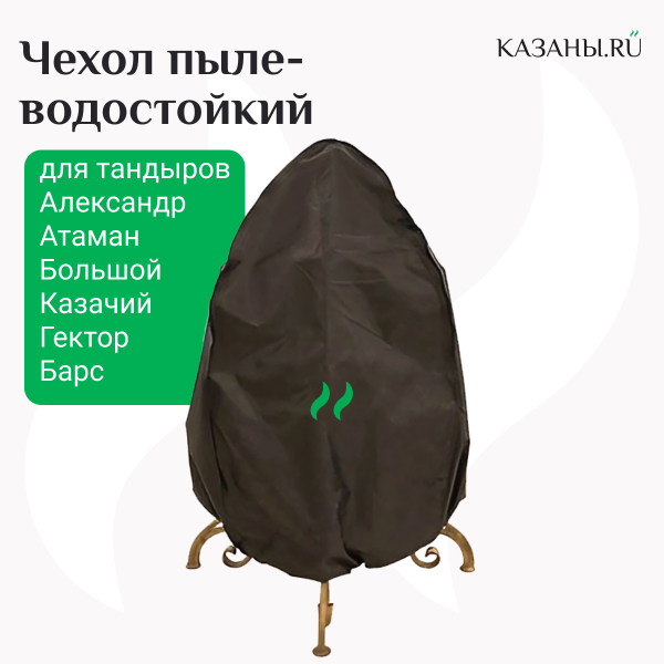 Высота тандыра с крышкой - 93 см, без крышки - 63 см. Диаметр жаровни в широкой части - 55 см, горловины - 32 см. Толщина стенок - от 5 см. Большое отверстие горловины позволяет использовать в тандыре емкие аксессуары: большие этажерки, камни с увеличенным диаметром, чугунки.