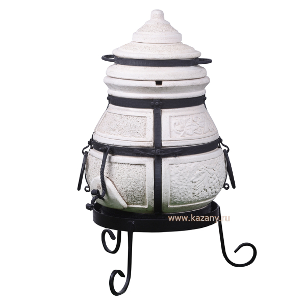 Погружать и выгружать печь легко благодаря удобным металлическим ручкам-кольцам, закрепленным на обручах, обхватывающих тандыр. Можно поставить печь в багажное отделение автомобиля, а подставка обеспечит ей статичность.